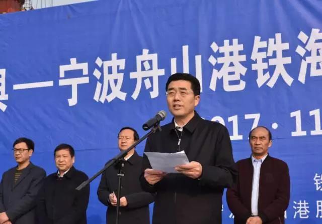 最后,市政府副秘書長邱新慧、武漢鐵路局駐馬店車務段段子余承梁、寧波港國際物流有限公司副總經理張學素、平輿縣委書記張懷德共同推動首發班列啟動推桿,宣布“平輿——寧波舟山港號”海鐵聯運班列首發開行。