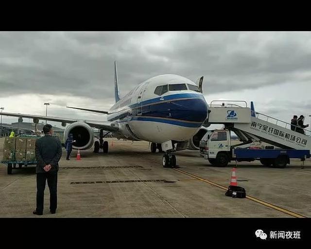 1月26日上午11點,南航接到通知,南寧機場有146件共1895公斤醫用防護服,和10件共270公斤血源防護包需運往武漢,半小時內,航空公司緊急調派機組和一架波音737-700飛機執行航班任務,積極協調南寧機場、沿途空管等各單位,運行、飛行、貨運、地服等部門通力合作,充分做好運送保障工作。13點20分,救援物資抵達機坪,工作人員立即裝載貨物,13點33分,物資裝載完畢航班關閉艙門,13點56分航班起飛。15點21分抵達武漢。