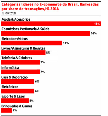 近期巴西E-bit咨詢公司對1843名受訪者的調查顯示,在最近12個月內,38%的互聯網用戶曾進行網購。2014年,巴西網絡消費行為的最大變化是開始大量從中國電商平臺購物,中國電商在巴西消費者中已具有一定口碑。2014年12月,巴西國際網購中的55%來自中國。