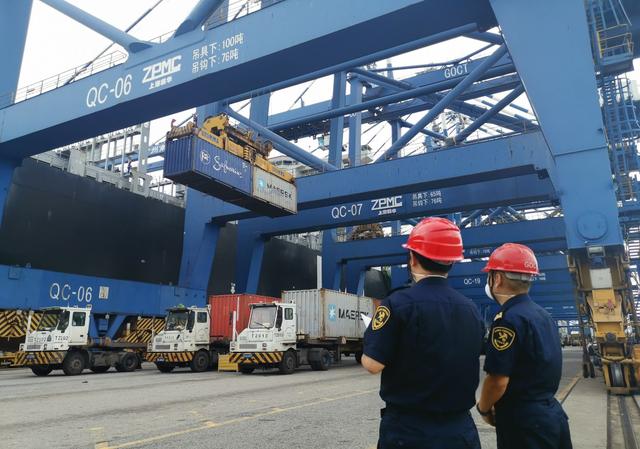 海關(guān)部門(mén)現(xiàn)場(chǎng)監(jiān)管跨境電商出口貨物上船