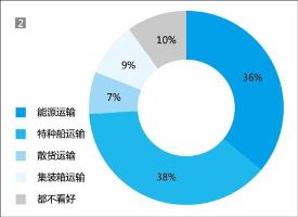 38%的調查對象選擇“特種船運輸”,伴隨著“一帶一路”戰略的推進,相關的設備運輸將為特種船運輸業帶來福音;36%的調查對象認為“能源運輸”將成為市場的佼佼者,其判斷因素恐怕來自于2014年全年表現最好的油運市場;9%的調查對象選擇“集裝箱運輸”,7%的調查對象選擇“散貨運輸”,這樣的比例顯示出這兩大運輸市場走勢依然不樂觀。此外,10%的調查對象“都不看好”任何運輸市場,顯然是悲觀派。