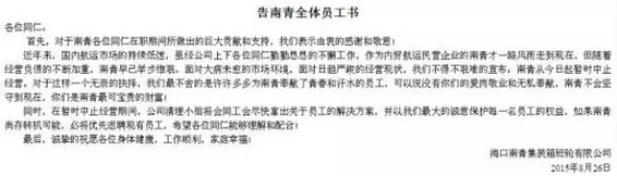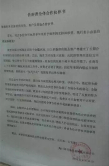 而今天的《告全體合作伙伴書》,將是南青集裝箱班輪公司最為黑暗的一天。
