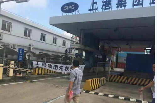 目前,事發現場有眾多貨代、貨主們舉著“上港集團無權扣貨”“上港集團還我貨物”的橫幅在進行維權、抗議。