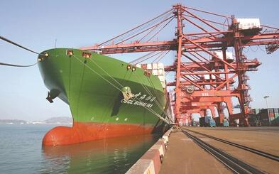 今年1月份,連云港港完成貨物吞吐量1905.89萬噸,同比增長1.58%,實現(xiàn)首月生產“開門紅”。圖為昨日,大型集裝箱船舶“中海渤海”輪正在連云港港卸載集裝箱。