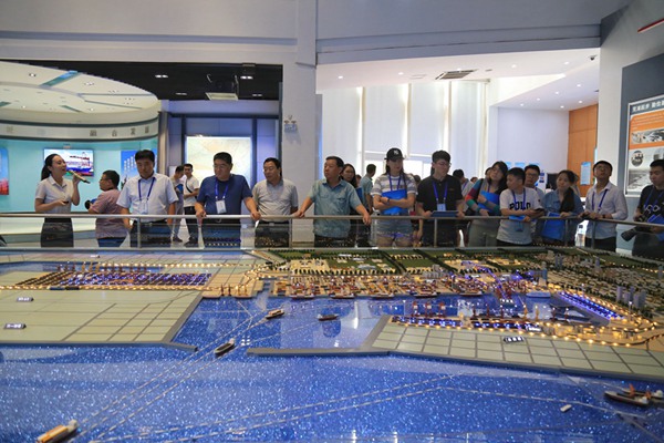 第十四屆中國網絡媒體山東行采訪團走進日照港展覽館(鄒慧 攝)