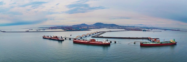 記者了解到,在干散貨領域獨樹一幟后,日照港發力液散貨運輸。黃海灣闊水深,不凍不淤,憑借這一優勢,日照港目前有3座30萬噸級原油碼頭正式投用,第4座30萬噸級原油碼頭已獲得核準。僅僅靠69個員工的緊密協作,便可在36個小時內裝卸完成30萬立方的原油。日照港已實現將油品直接從碼頭輸送至煉油廠,“日照-儀征”、“日照-東明”以及正在建設“日照—濮陽—洛陽”、“日照-京博”輸油管線,使日照港成為集“船舶、碼頭、倉儲、管道、用戶”于一體的原油集疏運體系。而這,僅是日照港推動新舊動能轉換以及實現產業升級的一個縮影。