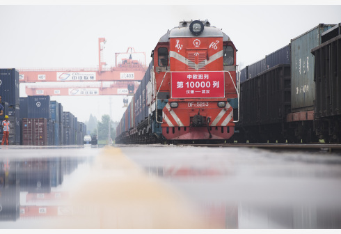 X8044次中歐班列(漢堡—武漢)到達(dá)武漢吳家山鐵路集裝箱中心站。