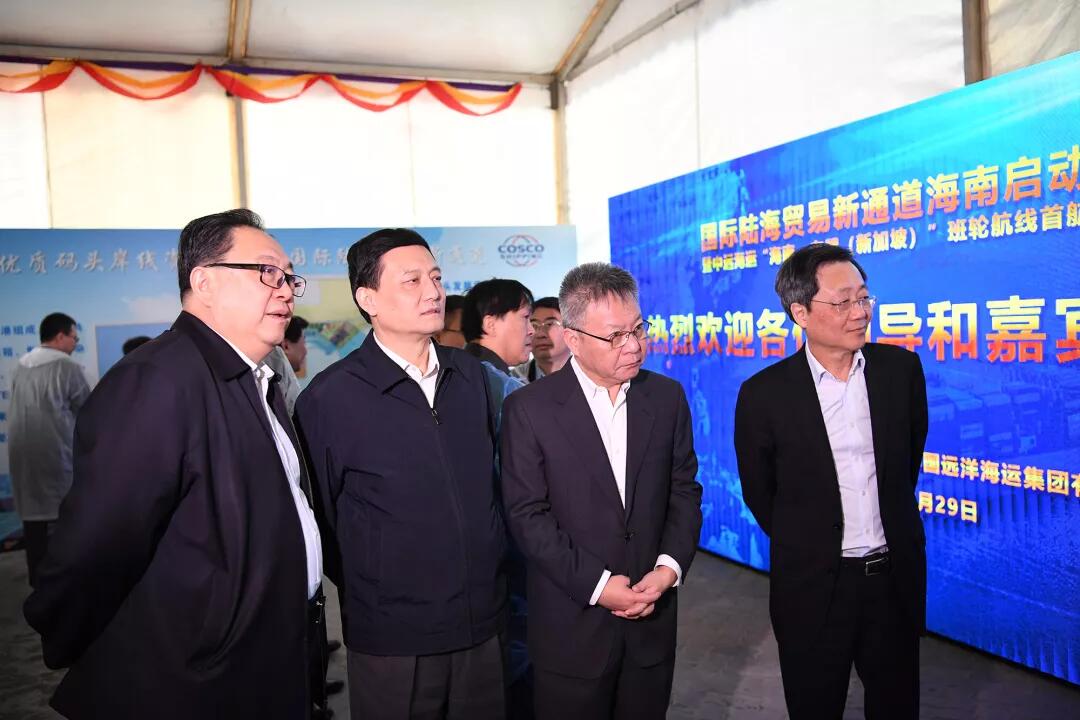 12月29日,由海南省人民政府與中國遠洋海運集團有限公司共同主辦的國際陸海貿易新通道海南啟動暨中遠海運“海南-東盟(新加坡)”班輪航線首航儀式在海南港航控股有限公司旗下洋浦小鏟灘碼頭舉行。