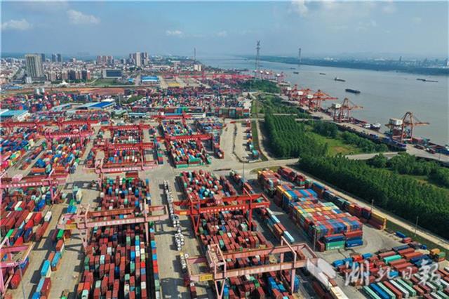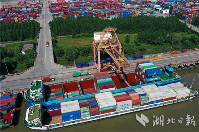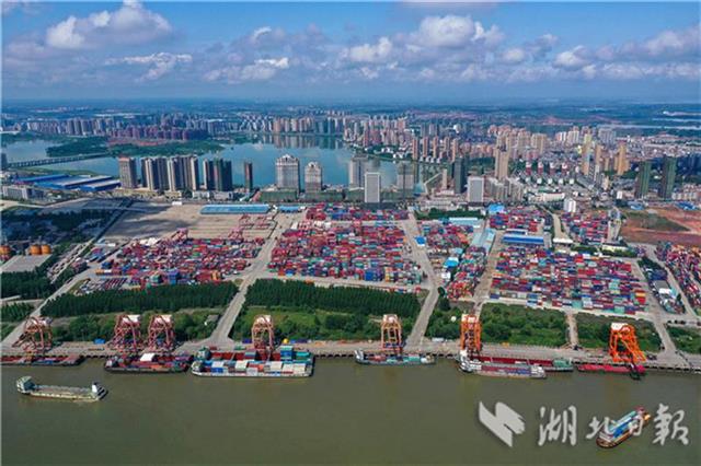2019年5月26日,雨后放晴的武漢新港陽邏港區一片繁忙。