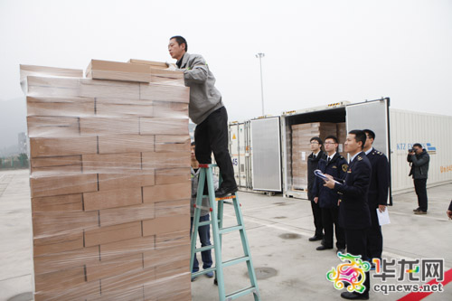 29日上午,渝新歐鐵路國(guó)際班列首批丹麥嬰兒食品回程暨丹麥Moohko(麥蔻)新品抵渝貨物開(kāi)箱活動(dòng),在重慶市西部物流園舉行,海關(guān)工作人員現(xiàn)場(chǎng)對(duì)3個(gè)13米長(zhǎng)的集裝箱開(kāi)箱驗(yàn)貨。據(jù)悉,這些奶粉國(guó)內(nèi)零售價(jià)格在280至300元每筒,很快就將在重慶各大母嬰商店上架。