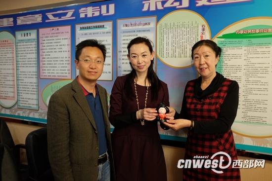 采訪團(tuán)向陜西省駐新疆辦事處贈(zèng)送代表陜西的唐妞。