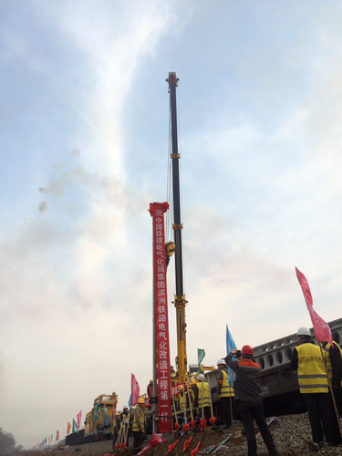 電氣化局集團組立起濱洲鐵路內蒙段電氣化改造第一桿