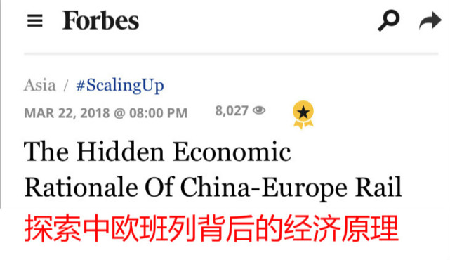 在美國《福布斯》雜志看來,中歐班列已成為中國軟實力的象征。