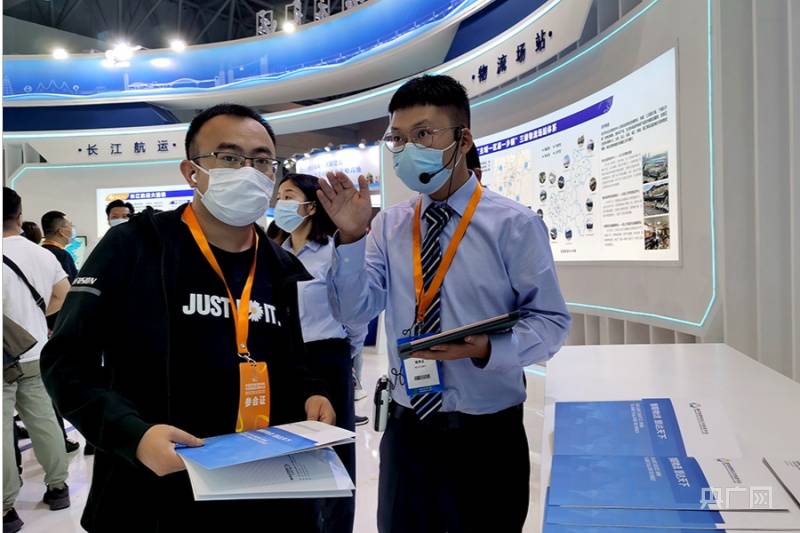 交運(yùn)工作人員向嘉賓介紹情況(央廣網(wǎng)發(fā) 王海攝)